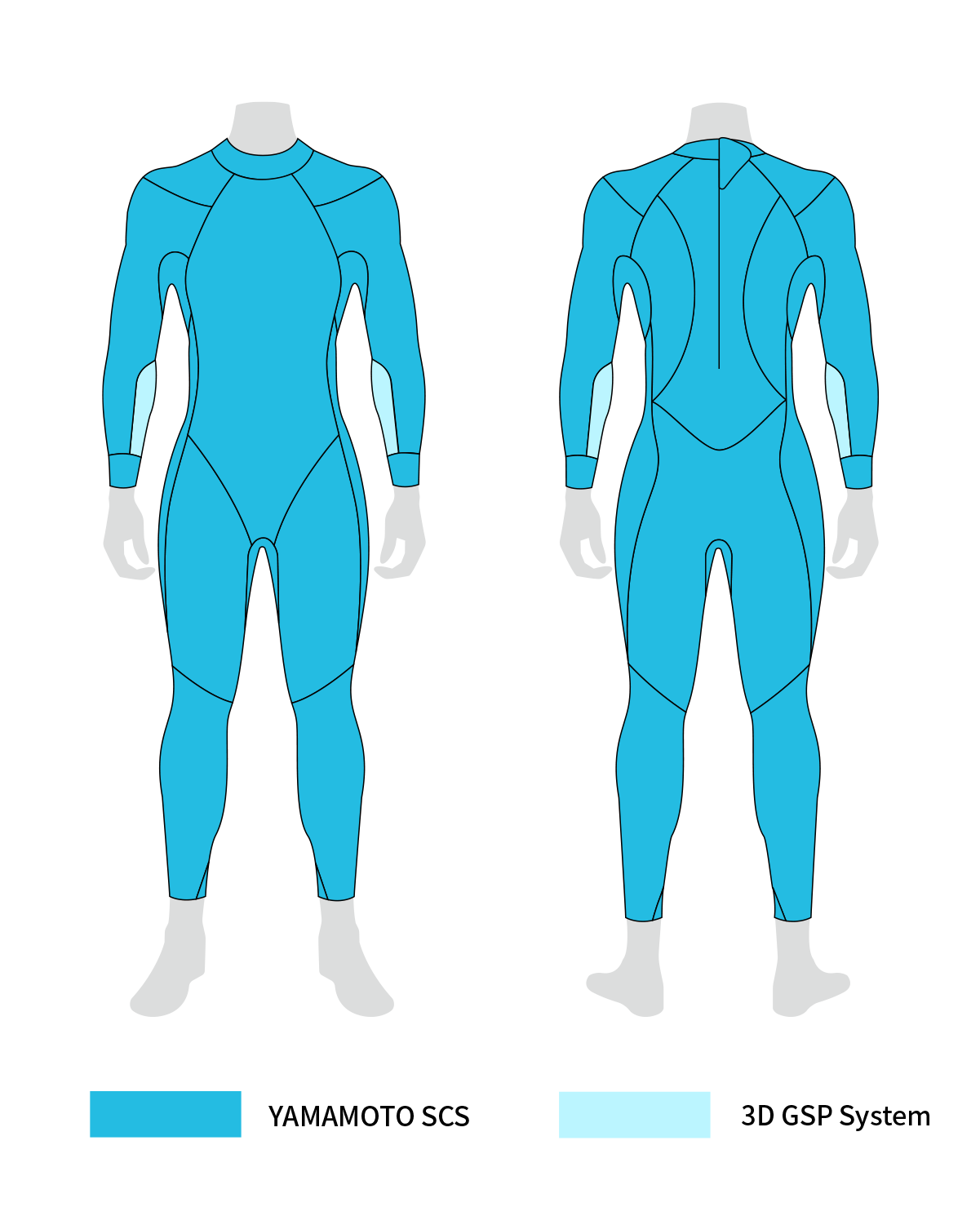 Die Yamamoto SCS-Beschichtung bedeckt den gesamten Neoprenanzug. Die Beschichtung ist eine glatte Oberfläche, die den Wasserwiderstand verringert und die hydrodynamischen Eigenschaften verbessert. Schwimmer können bei gleichem Kraftaufwand schneller schwimmen.