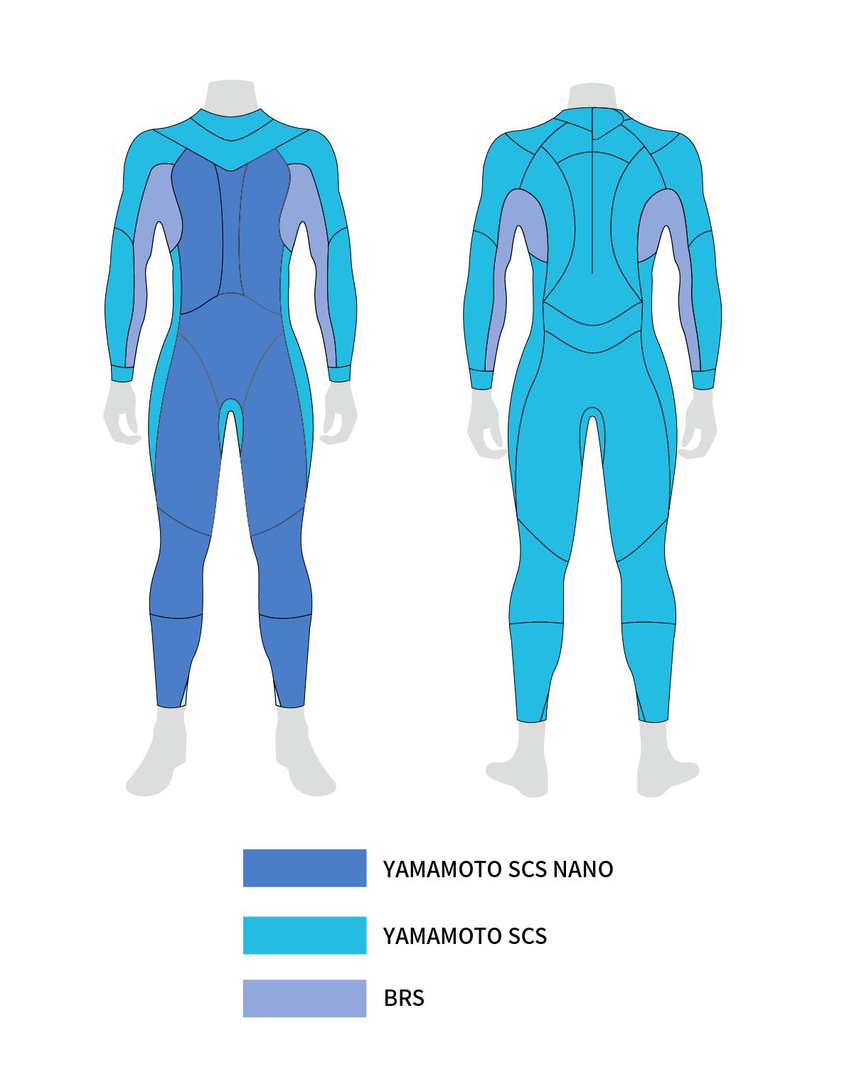 Yamamoto Nano SCS coating covers the majority of the wetsuit. The coating is an ultra smooth surface finish which reduces water resistance and improves hydrodynamic property. Swimmers can go much faster with the same effort level.