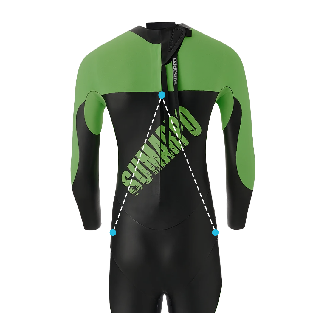 The combination of 1.5mm of Yamamoto #39 neoprene and SQ-Flex Stretch Inner Lining on the shoulders and back provides 580% elongation while swimming.