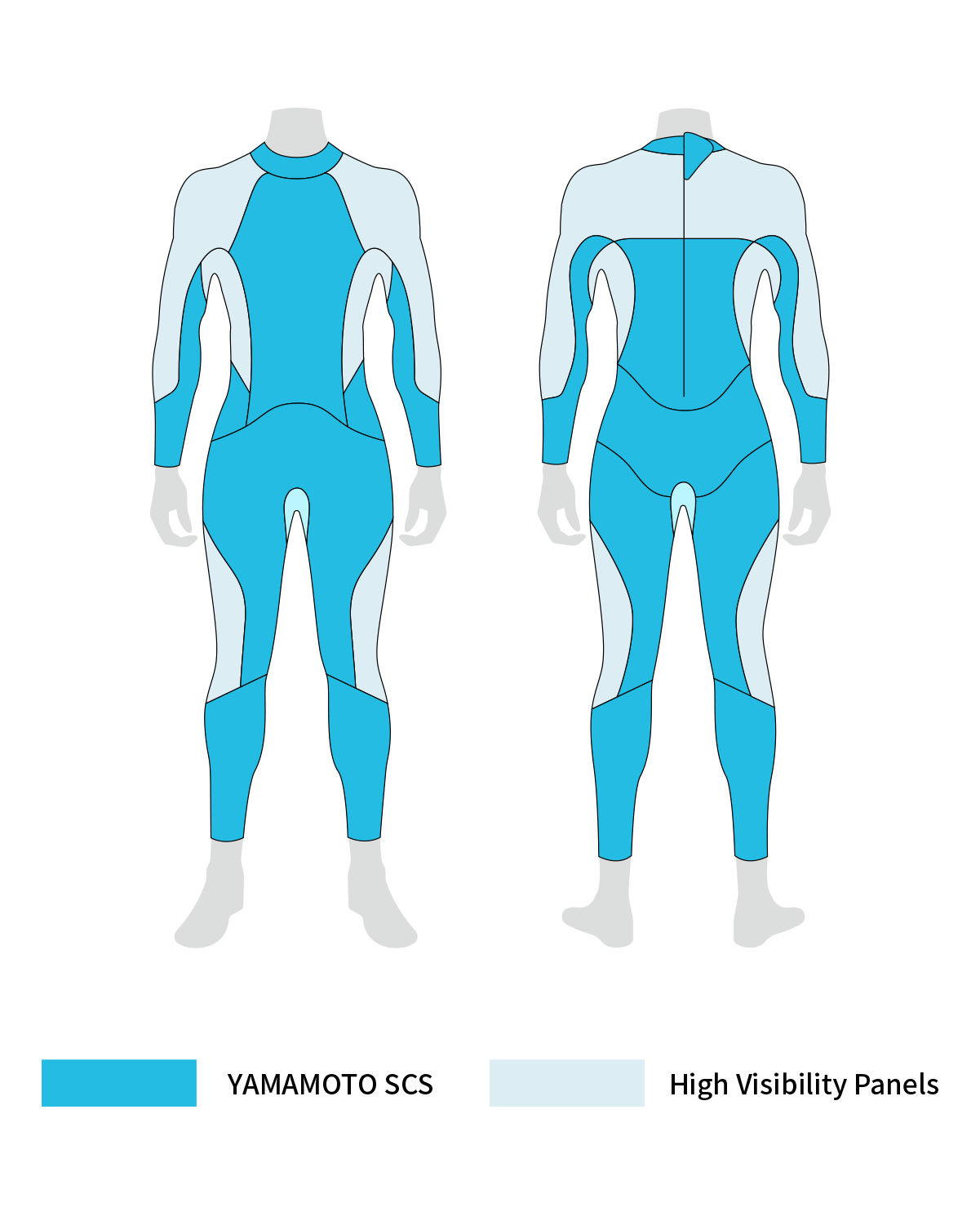 The Yamamoto SCS coating covers the majority of the wetsuit. The coating is a smooth finish which reduces water resistance and improves hydrodynamic properties. Swimmers can go faster with the same effort level.
