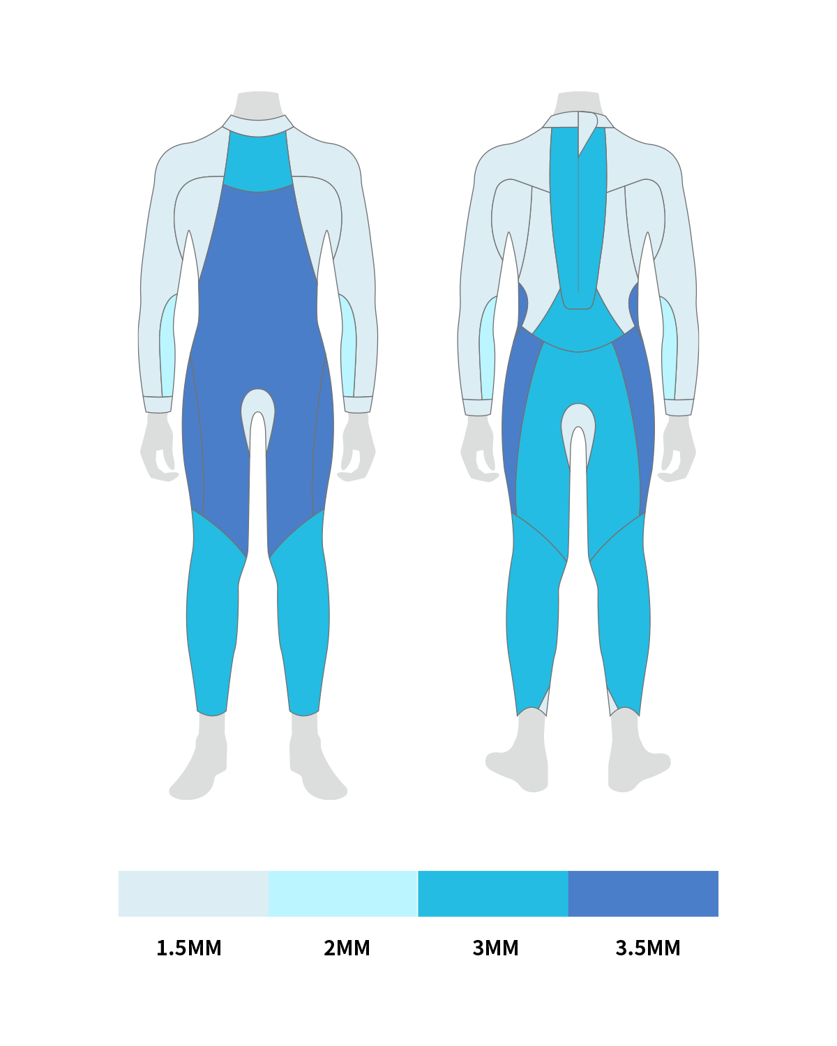 A combinação de 2 mm de neoprene Yamamoto #39 e forro interno SQ-Flex Stretch nos ombros, mangas e axilas proporciona 530% de alongamento enquanto se nada.