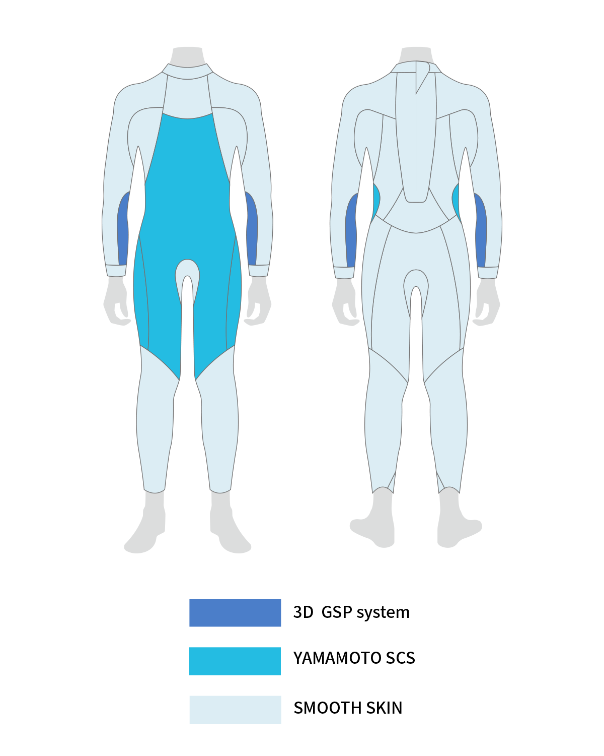 O revestimento Yamamoto SCS cobre a maioria do fato de mergulho. O revestimento tem um acabamento suave que reduz a resistência da água e melhora as propriedades hidrodinâmicas. Os nadadores podem nadar mais rápido com o mesmo nível de esforço.